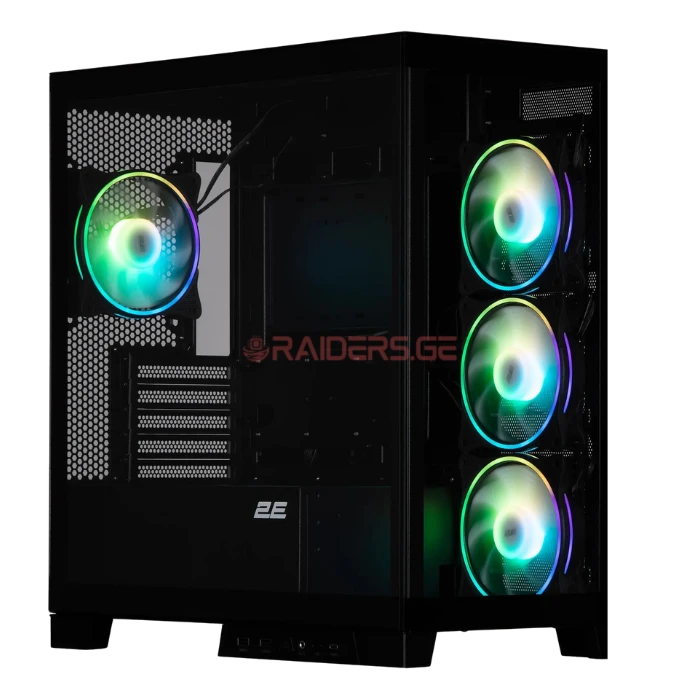 2E Gaming Computer case Fantom GK701B, without PSU, 2xUSB 3.0, 1xUSB Type-C, 4x120mm ARGB, controller with remote, TG Side/Front Panel, mATX, Black