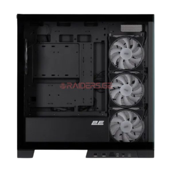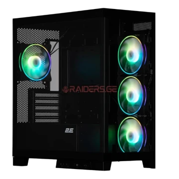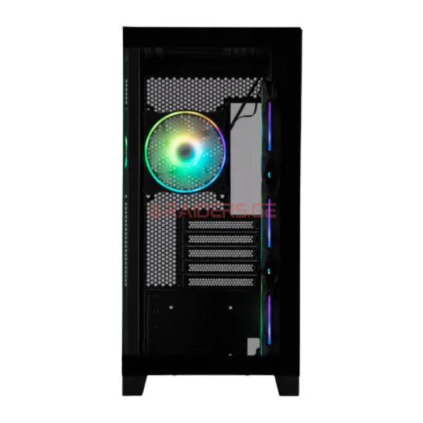 | 🧊 ჩაშენებული ფანები | შიდა პანელი: 3×120 მმ ARGB PWM • უკანა: 1×120 მმ ARGB 4-pin PWM (სულ 4 ცალი) |