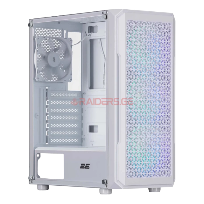 2E Gaming Computer case Hexagon G338W, without PSU, 2xUSB 3.0, 1xUSB Type-C, 1x120mm, 3x120mm ARGB, TG Side Panel, ATX, White