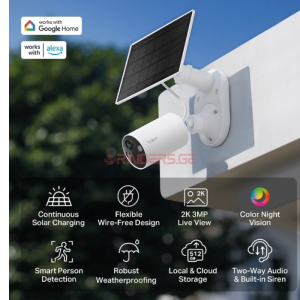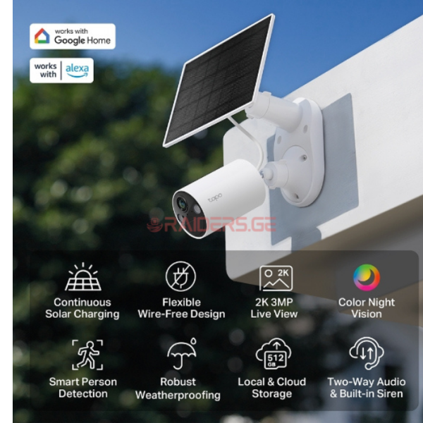 Solar Powered (არ საჭიროებს კაბელებს) • 2K Color Night Vision • Smart AI Detection • 2-Way Audio • IP65 • MicroSD / Cloud Storage • Tapo App კონტროლი • მარტივი მონტაჟი |