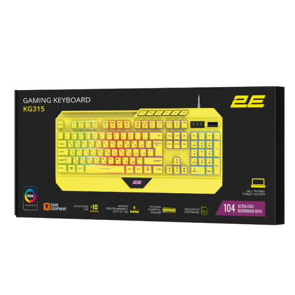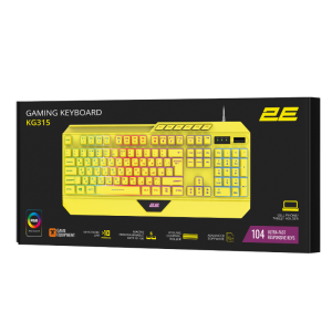 კლავიატურა 2E GAMING Membrane keyboard KG315 110key, USB-A, EN/UA, RGB, yellow, 2E-KG315UYW