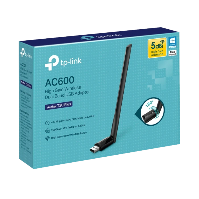 WiFi ადაპტერი Archer T2U Plus AC600, TP-Link, Wireless Dual Band USB Adapter
