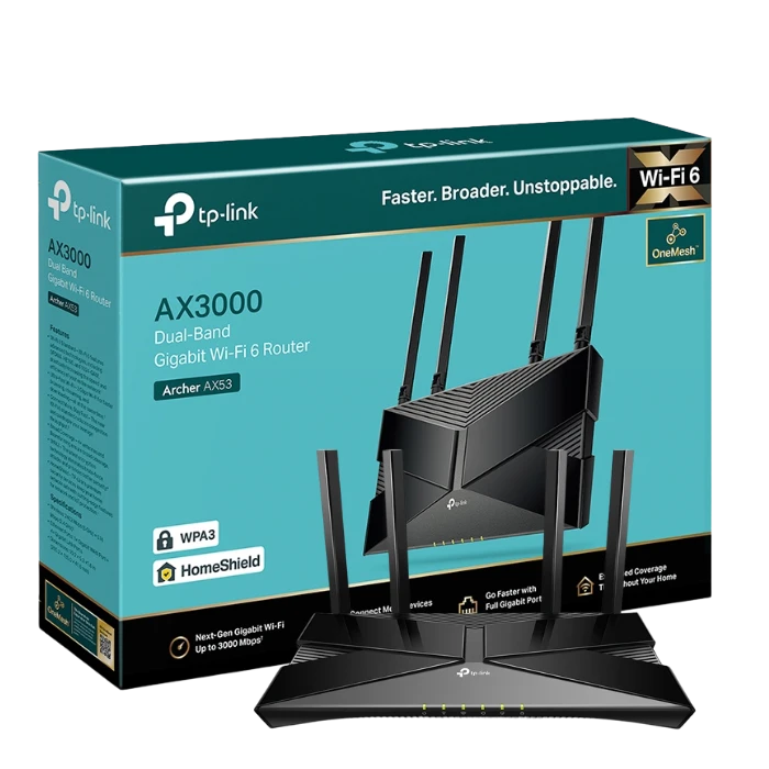 უსადენო როუტერი Archer AX53, TP-Link, AX3000 Wi-Fi 6 Router Dual-Band,5 GHz: 2402 Mbps