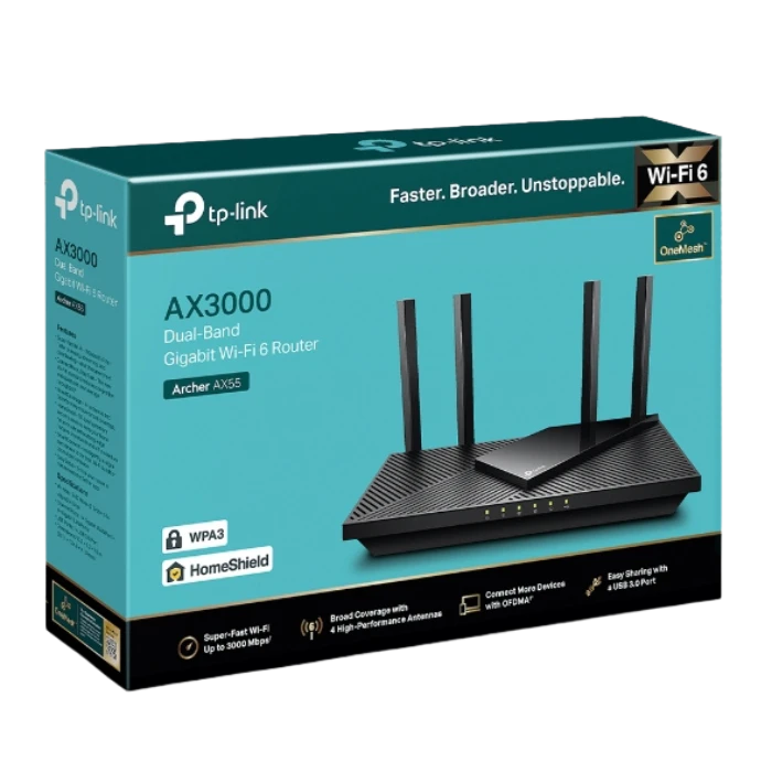 უსადენო როუტერი Archer AX55, TP-Link, AX3000 Wi-Fi 6 Gigabit Router Dual-Band