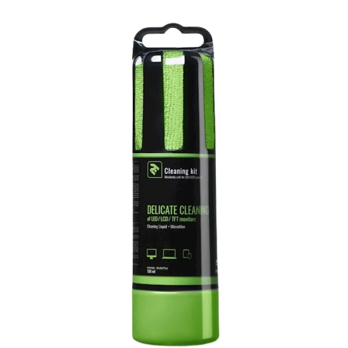 ეკრანის საწმენდი ხსნარი: Cleaning Kit 2E 150ml Liquid for LEDLCD+Cloth Green - 2E-SK150GR