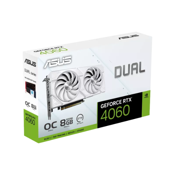 | 🛠 დამატებითი მახასიათებლები | ASUS Dual სერიის თეთრი ევო ედინშენი — თეთრი ქეის/LED აქცენტებით, პროგრამული მხარდაჭერა (GPU Tweak) |