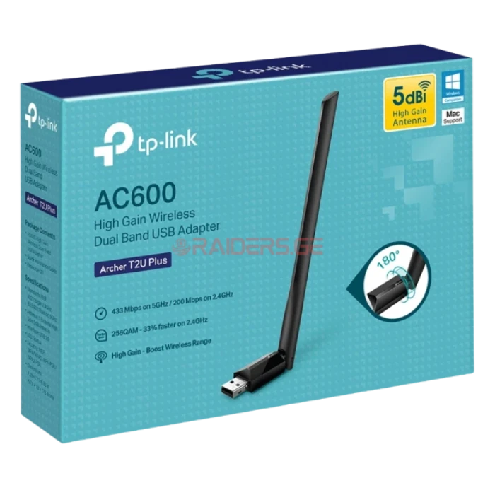 WiFi ადაპტერი Archer T2U Plus AC600, TP-Link, Wireless Dual Band USB Adapter