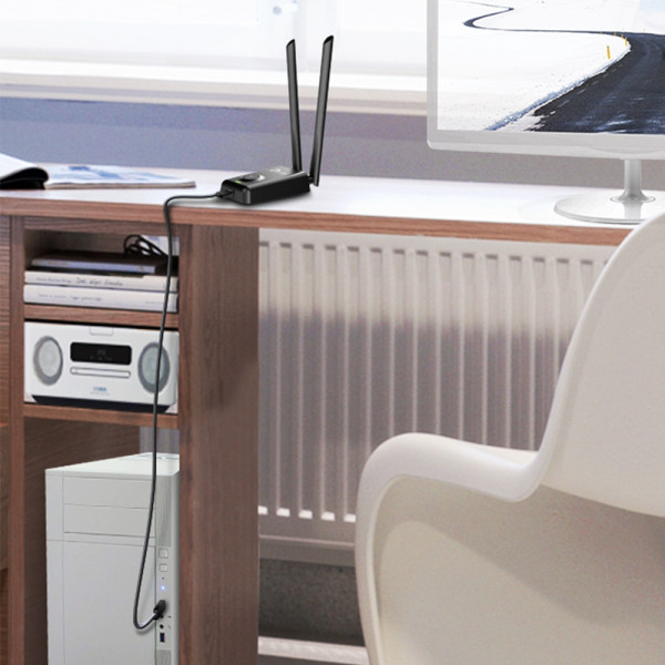 ეს ადაპტერი გამოირჩევა მაღალი გამტარუნარიანობით და ძლიერი სიგნალის მიღების შესაძლებლობით, რაც უზრუნველყოფს სტაბილურ კავშირს დიდ მანძილებზე.