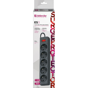 დენის ფილტრი ღილაკით, 994855, DEFENDER ES, 3.0m Surge Protector, 10A,5 Sockets